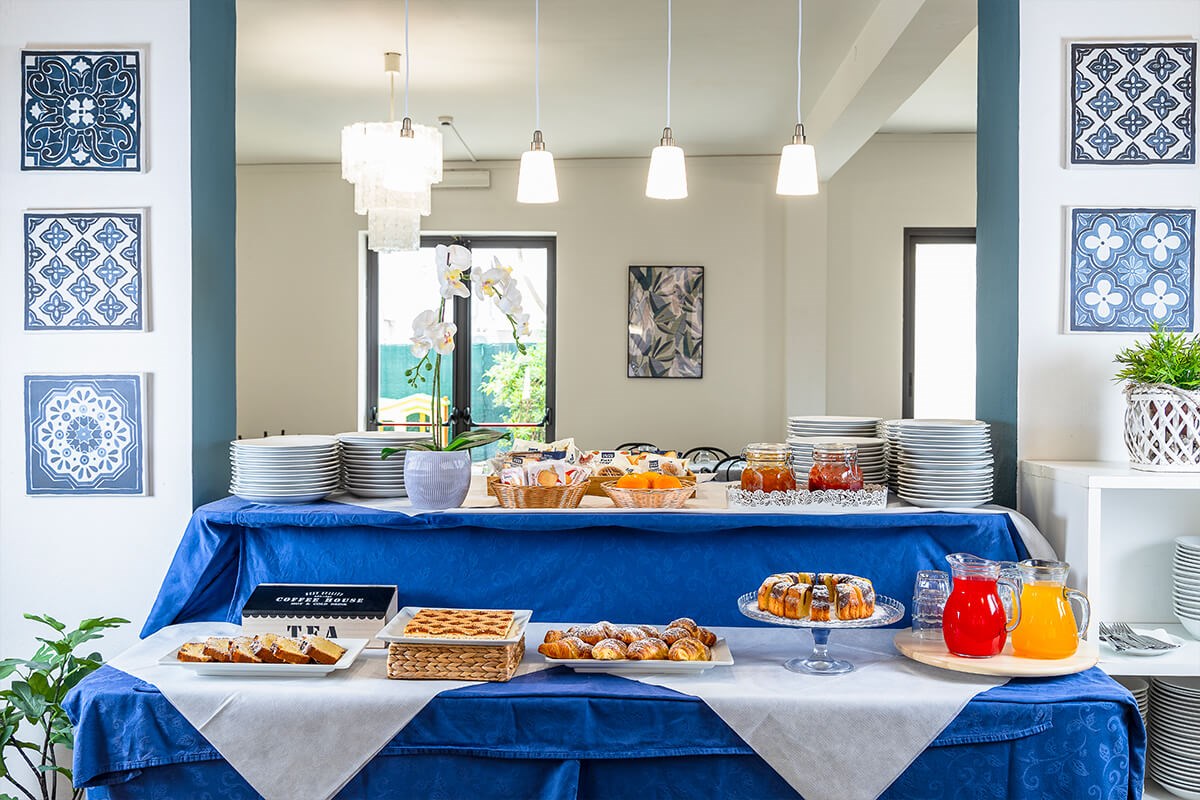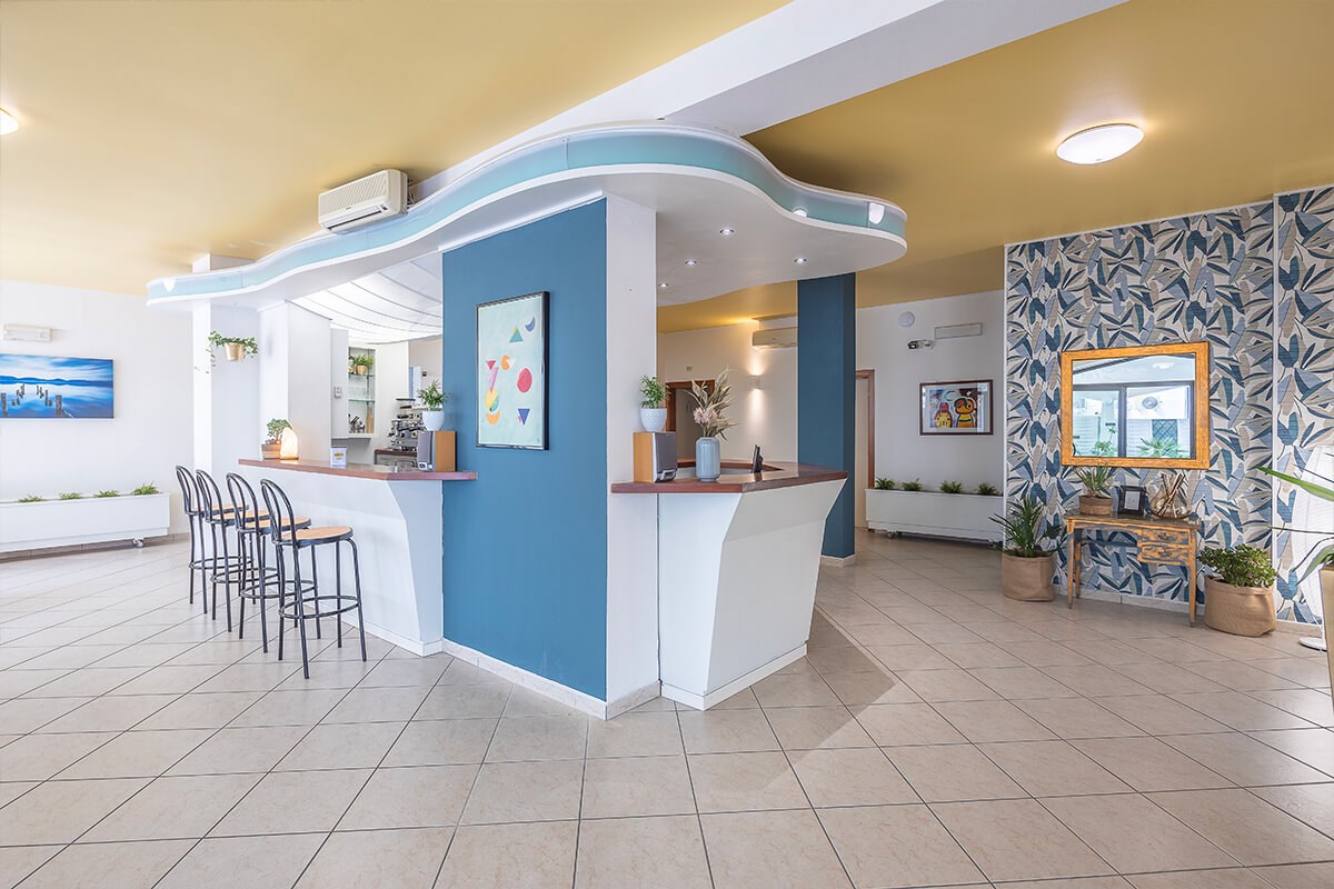 klimatizovaná vstupná hala s recepciou a posedením • bar • reštaurácia • výťah • wifi vo verejných priestoroch hotela • plážový servis na vyhradenej časti pláže (2 ležadlá a 1 slnečník na izbu zdarma) • parkovanie (za poplatok)