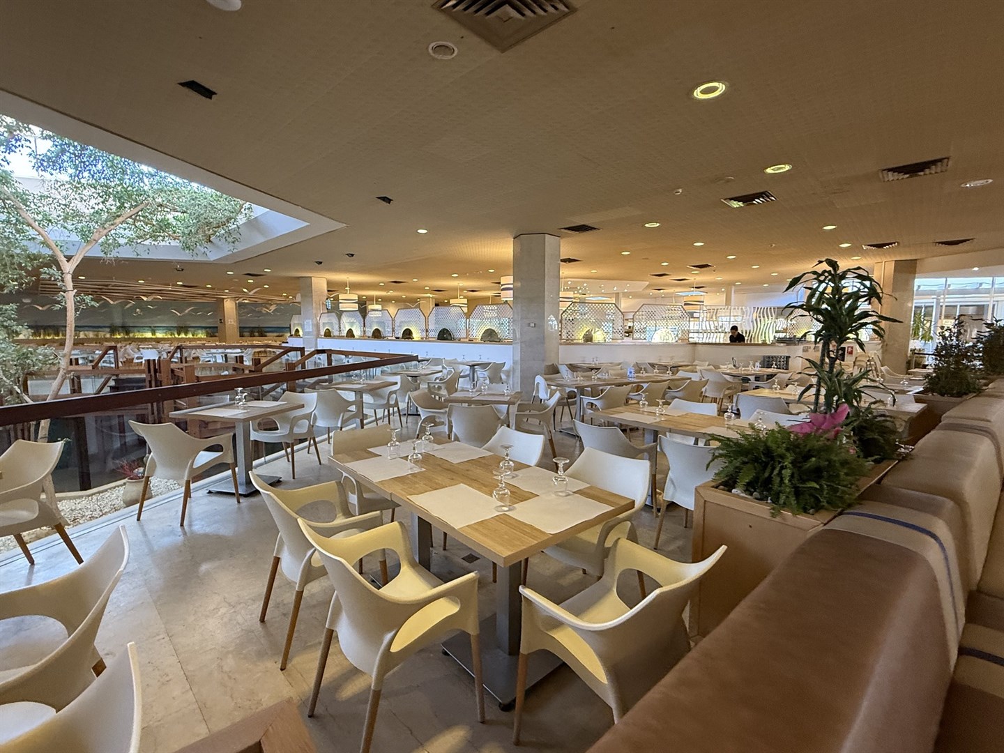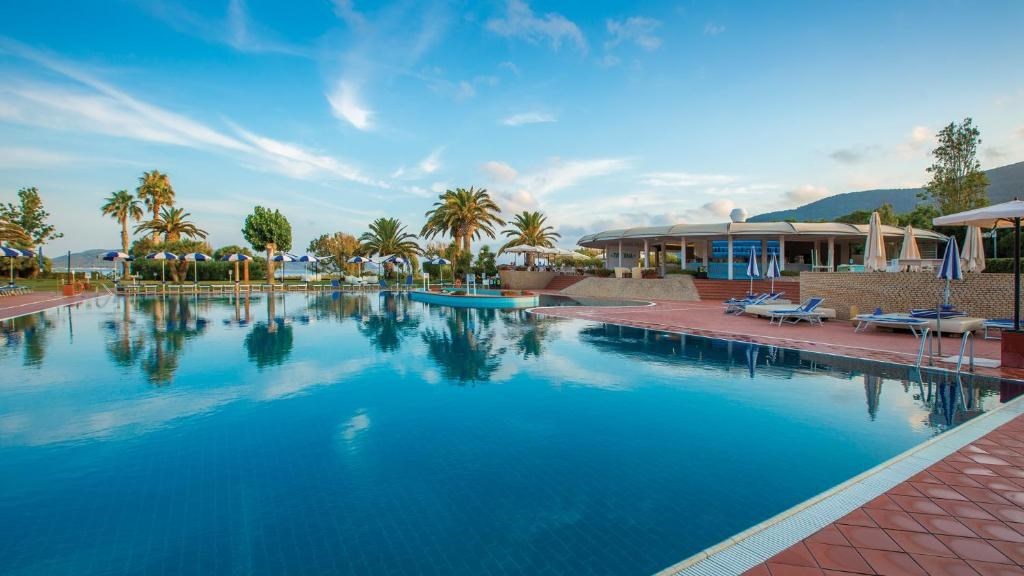 centrálna budova so službami a 3 ubytovacie bloky • vstupná hala s recepciou • hlavná reštaurácia • all inclusive bar • bar pri bazéne a bar na pláži (za poplatok) • bazén • 2 detské bazény • slnečníky a ležadlá pri bazénoch a na pláži (zdarma, plážové osušky za vratný depozit a poplatok) • 11 tenisových kurotv • stolný tenis • plážový volejbal • zóna pre jogu • bocca • posilňovňa • kaderníctvo • wifi • detský miniklub a ihrisko •denné a večerné hotelové animácie