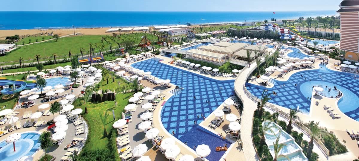 vstupná hala s recepciou • hlavná reštaurácia • 5 a´la carte reštaurácií (rezervácia nutná) • Piano lobby bar • pool bar • beach bar • snack bar • Amphi bar • Energy disco bar • hlavný vonkajší bazén • vnútorný bazén • detský bazén • aquapark (5 šmykľaviek pre dospelých a 3 pre deti) • zábavný park/lunapark • SPA a wellness centrum • fitness centrum • športoviská • miniklub • medzinárodné animácie a večerný program • wifi